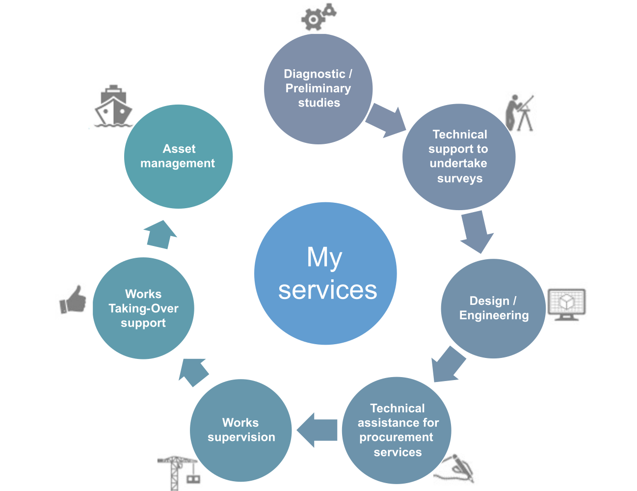 - Ingénierie maritime appliquée aux ouvrages portuaires et côtiers: accès nautiques, ouvrages de protection hydrodynamique (digues, tapis anti-affouillement), dragage / remblaiement.
